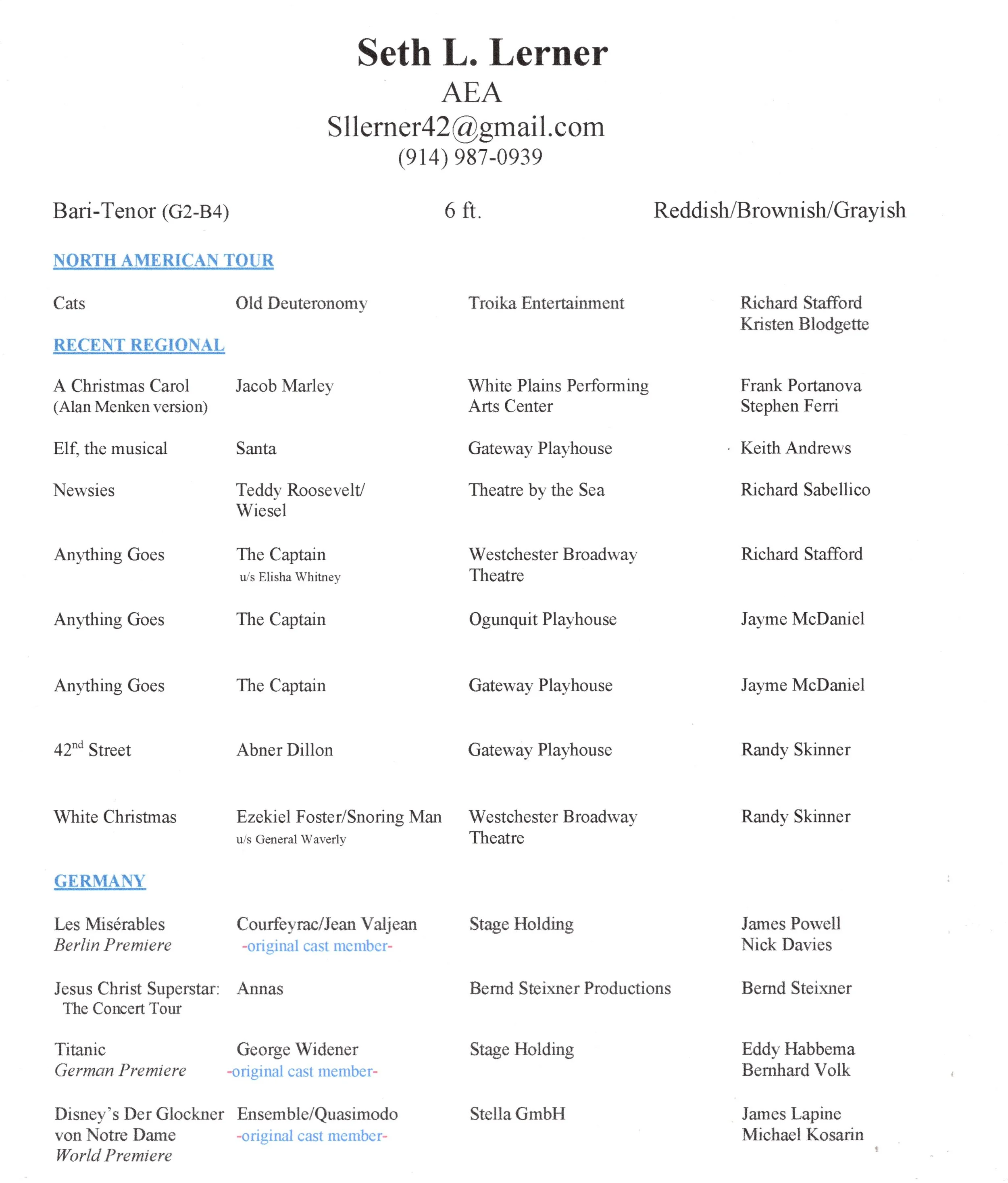 As a member of the world premier cast of Disney’s Hunchback of Notre Dame in Berlin directed by James Lapine, Seth spent over two years singing Alan Menken’s incredible score while occasionally playing the hunched one himself.